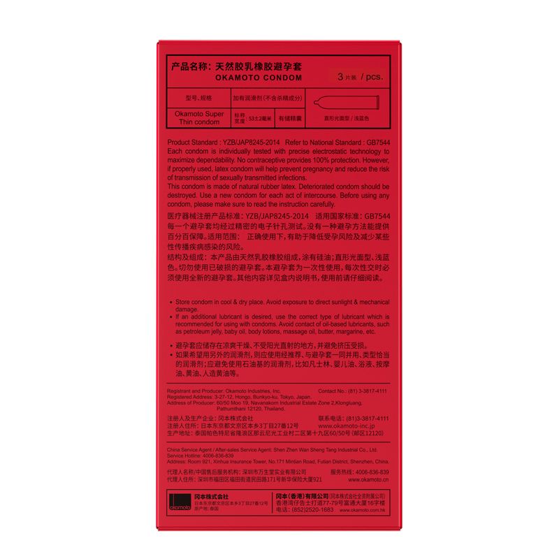 (安全套)冈本激薄体验装3只装避孕套 新品